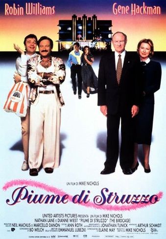 (1996) R: Mike Nichols A: Robin Williams, Nathan Lane, Gene Hackman, Dianne Wiest. Bel rifacimento, superbo nel cast e sferzante nei dialoghi, de IL VIZIETTO (1978) su una coppia di omosessuali costretti a fingersi etero per salvare un matrimonio. Candidatura agli Oscar per la scenografia.