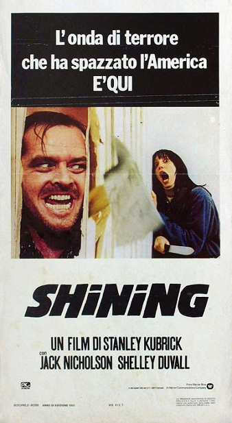 (1980) R: Stanley Kubrick A: Jack Nicholson, Shelley Duvall, Danny Lloyd. Da un romanzo di Stephen King, custode di un albergo sperduto improvvisamente impazzisce. Thriller orrorifico che avrebbe dovuto intitolarsi “Jack Nicholson”, di fascino non smisurato se non fosse appunto per Nicholson che col suo ghigno luciferino si prende la briga di convertirlo in capolavoro.