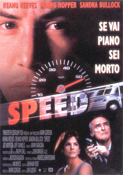 (1994) R: Jan de Bont A: Keanu Reeves, Dennis Hopper, Sandra Bullock. Il poliziotto Reeves deve mantenere la velocità di un bus di linea sopra gli 80 km all’ora sennò scoppia una bomba! L’idea paradossale del “se vai piano sei morto” si produce in un action thriller ben orchestrato con finale romantico. 2 Oscar: suono, effetti speciali sonori.