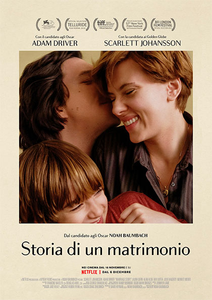(2019) R: Noah Baumbach A: Scarlett Johansson, Adam Driver, Alan Alda. Dramma sulla fine di un matrimonio (“Storia di un divorzio” pareva brutto). Toccante, doloroso ma non vittimista, la Johansson per l’occasione più brava che bella e l’efficace Driver dirigono un’orchestra di attori strepitosi. Distribuzione Netflix.