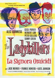 (1955) R: Alexander Mackendrick A: Katie Johnson, Alec Guinness, Peter Sellers, Cecil Parker, Herbert Lom. Balzana ed esilarante commedia nera che parla di alcuni criminali alle prese con una vecchietta apparentemente innocua. Da lodi l’interpretazione della Johnson che fa la nonnina. Rifacimento ottimo dei Coen nel 2004 con il titolo LADYKILLERS.