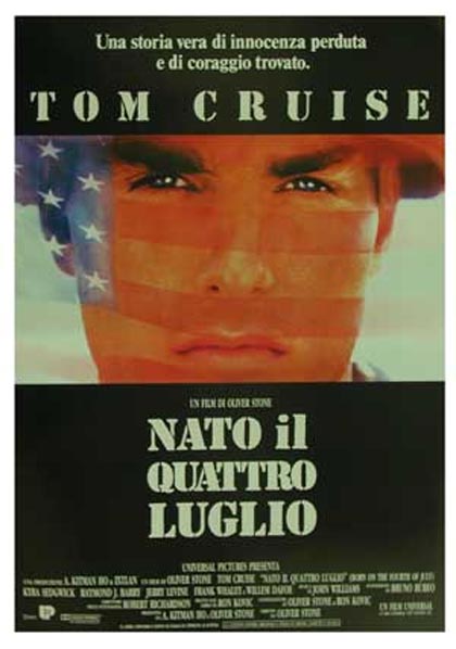 (1989) R: Oliver Stone A: Tom Cruise, Bryan Larkin, Raymond J. Barry, Caroline Kava. Biografia di Ron Kovic, ex marine tornato dal Vietnam su una sedia a rotelle che diventa pacifista. Un film atroce e dolente, che puzza di Cruise lontano un chilometro. 2 Oscar, per miglior regia e miglior montaggio, ma ci sarebbe stato anche quello per il miglior attore protagonista.
